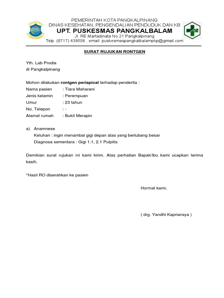 Lebih baik lagi jika anda dapat sertakan bersama bukti. Kenapa pemotongan PPh Pasal 21-nya tidak digabungkan dengan gaji. Contoh Surat - Surat rujukan adalah surat pengantar tenaga medis dalam hal ini ditujukan kepada dokter maupun dokter gigi secara tertulis yang bertujuan sebagai advice petunjuk pengobatan maupun pengobatan secara lebih lanjut kepada tenaga medis yang lebih berkompeten dalam bidangnya.